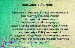 До 30 октября проводится открытая олимпиада по музыкальной литературе для учеников и их родителей МУЗЫКАЛЬНЫЙ ЛАБИРИНТ.
