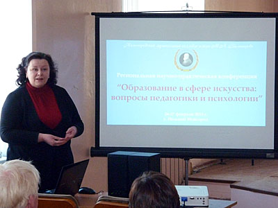 ![]() В конференции принимали участие преподаватели НМК им. Балакирева, детских музыкальных, художественных школ и школ искусств города и области, студенты средних и высших музыкальных учебных заведений. В ходе конференции её участники обменивались научными знаниями и практическим опытом в области педагогики, психологии и методики образования в сфере искусства.